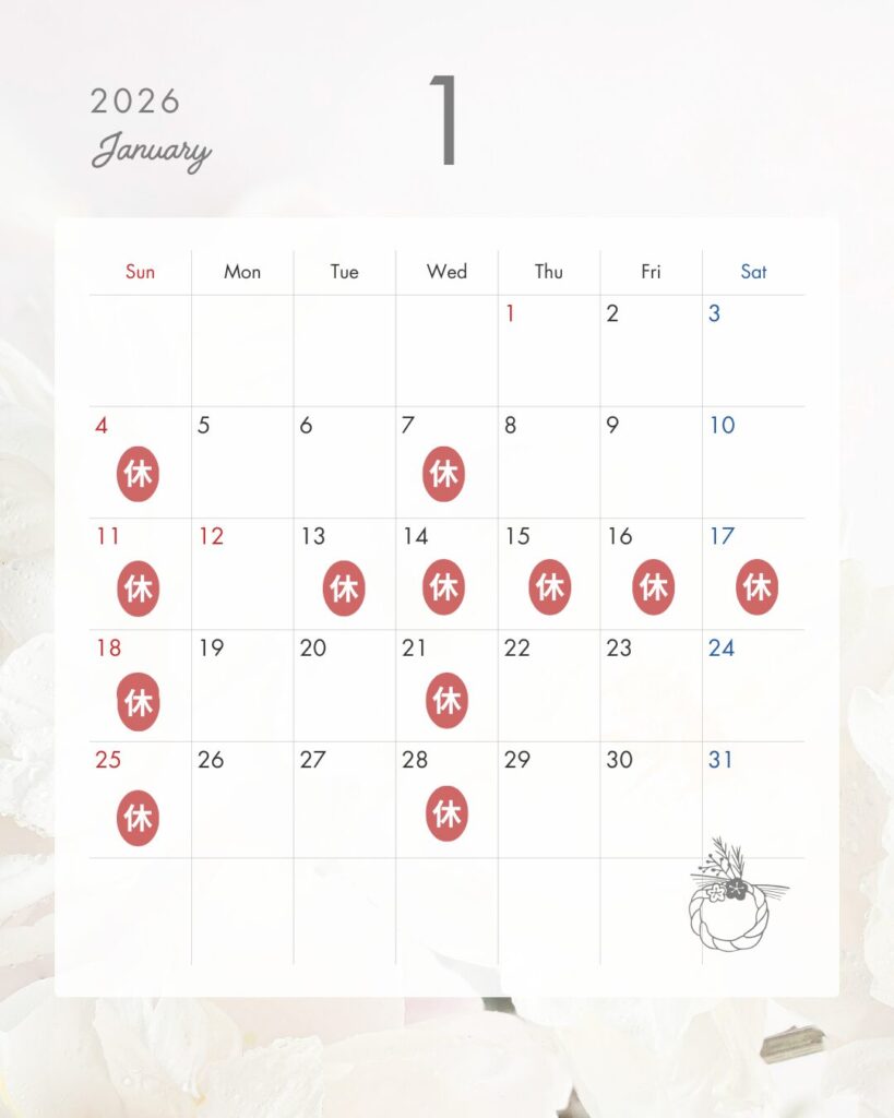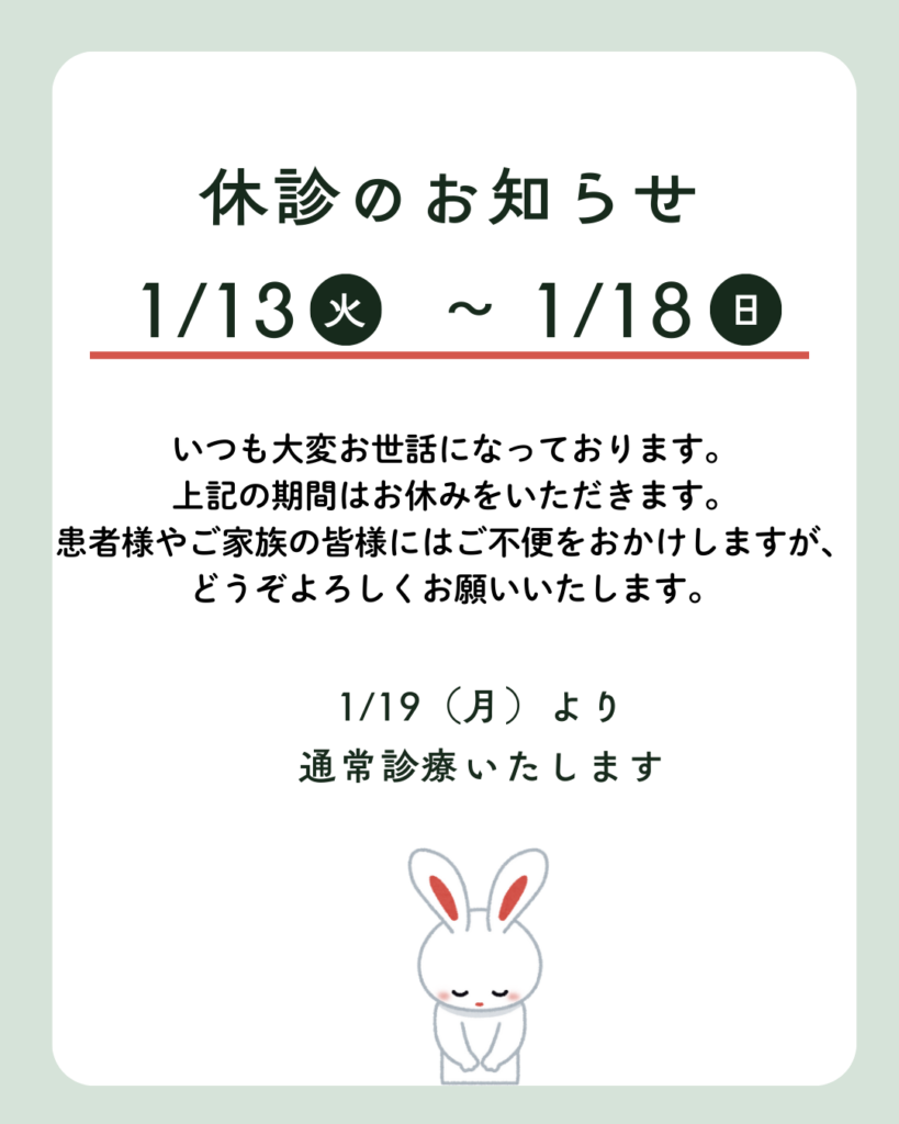1月は、中旬に連休いただいております。ご確認の程宜しくお願い致します。